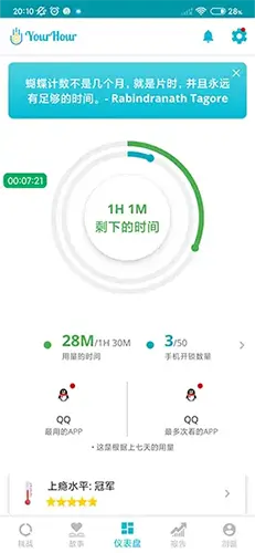 YourHour 高级版 猫线长 04-12 03:12 7次浏览 0条评论 YourHour是一款专注于数字健康的屏幕时间管理工具,可精准追踪手机使用时长、解锁次数及各APP使用情况,配备浮动计时器实时显示使用状态,支持设置应用使用限制、智能拦截分心APP,还能分析手机成瘾等级、生成详细使用报告并支持数据导出。下载地址:夸克网盘 百度网盘 屏幕管理 微笔记 vip版 视频下载器 高级版